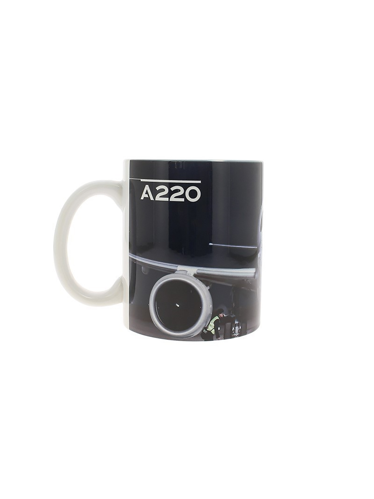 Airbus Sammelbecher oder Trinkgefäß mit einem spektakulären Foto der A220 am Boden.