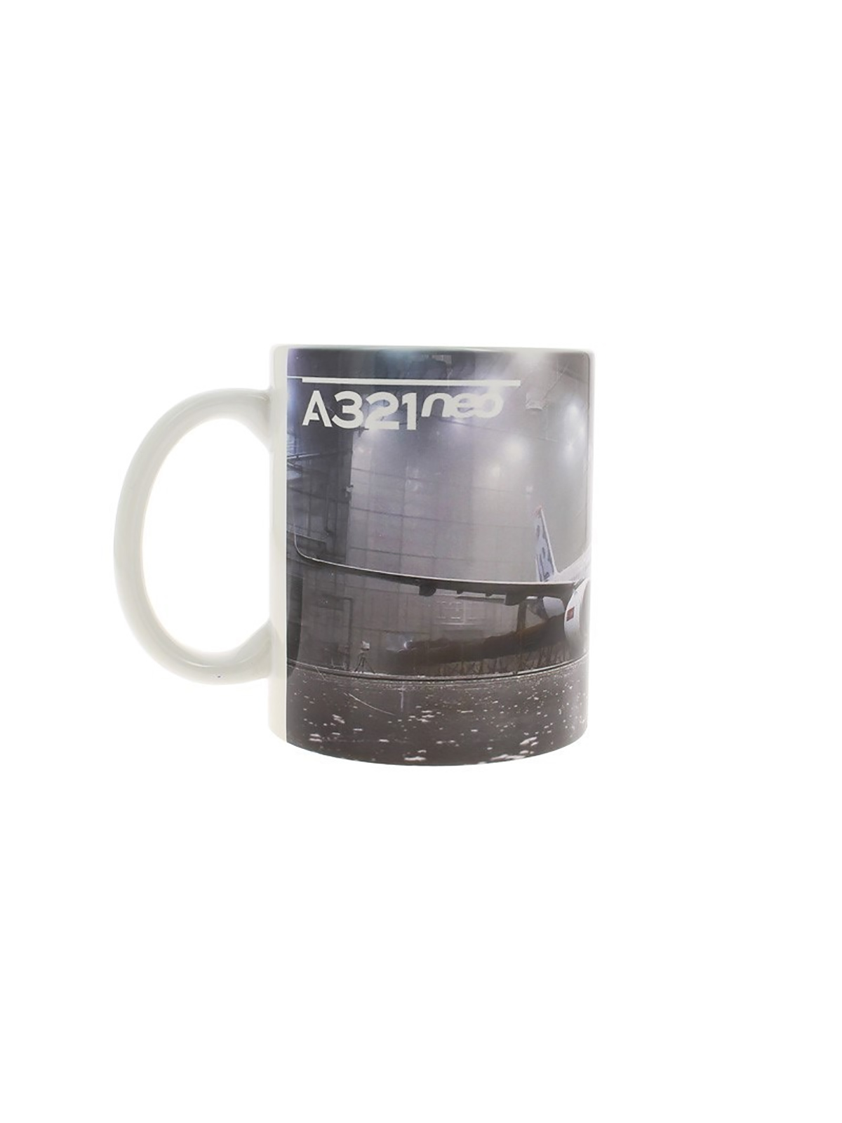 Airbus Sammelbecher oder Trinkgefäß mit einem spektakulären Foto der A321neo im Hangar.