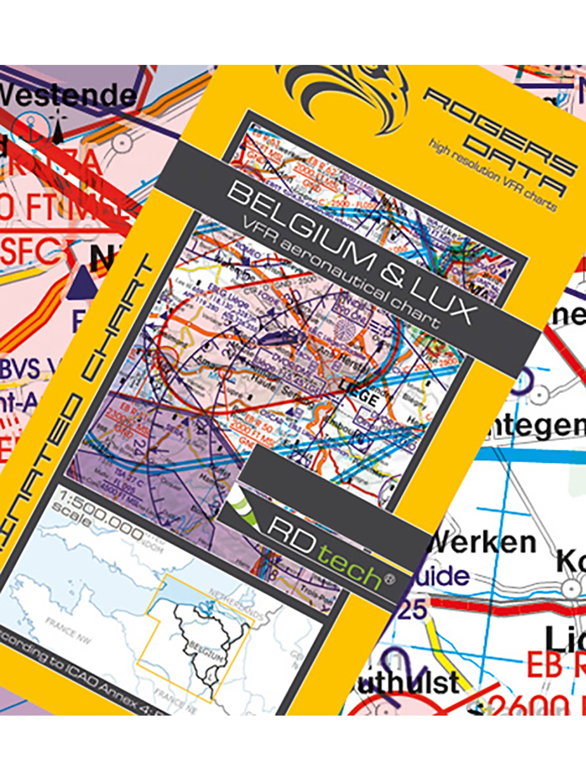 Belgien & Luxemburg 2026 - Rogers Data VFR Karte, 1:500.000, laminiert, gefaltet