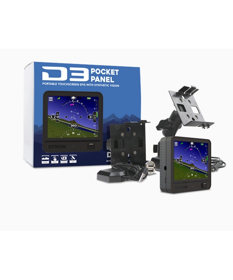 Das Dynon D3 Pocket Panel ist die neueste Version der mobilen EFIS-Serie von Dynon. Mit stark verbesserter Helligkeit, einer neuen intuitiven Touchscreen-Oberfläche und der neuen Synthetic-Vision-Funktion ist das Dynon D3 eine echte Alternative zu gewöhnlichen Einbaugeräten. Mit den zum Lieferumfang gehörenden diversen Befestigungslösungen ist das Dynon D3 aus der Box heraus einsatzbereit. Sonst übliche Zertifizierungen und Zulassungen gehören damit der Vergangenheit an.
