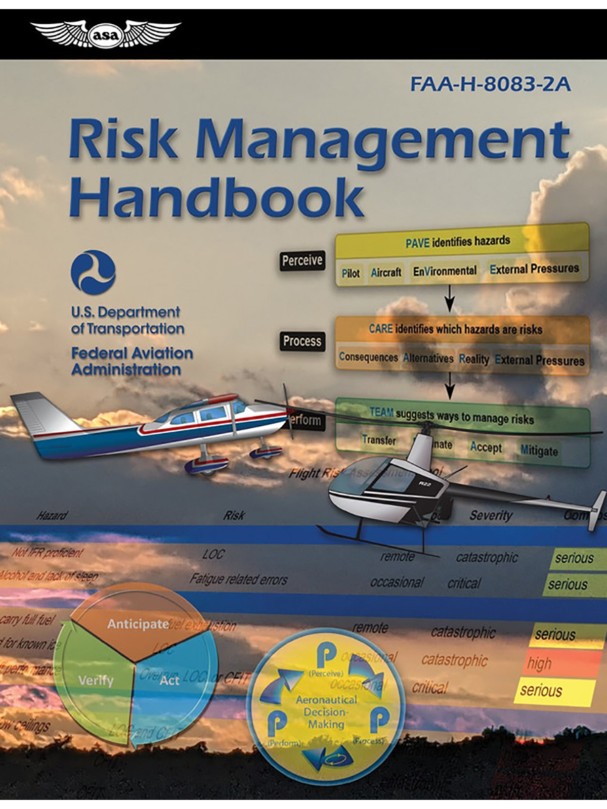 This comprehensive manual covers subjects such as human behavior, identifying and mitigating risk, aeronautical decision-making, single-pilot resource management, automation, and risk management training. Appendices contain checklists and scenarios to aid in setting personal minimums, sample risk management scenarios, and a controlled flight into terrain (CFIT) checklist.