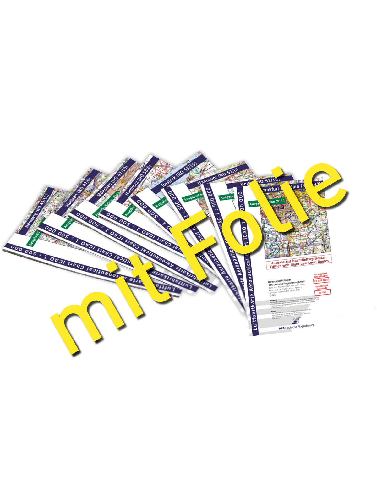 This product is: complete set of ICAO Charts Germany (8 sheets) incl. night low-level flight routes, laminated, folded