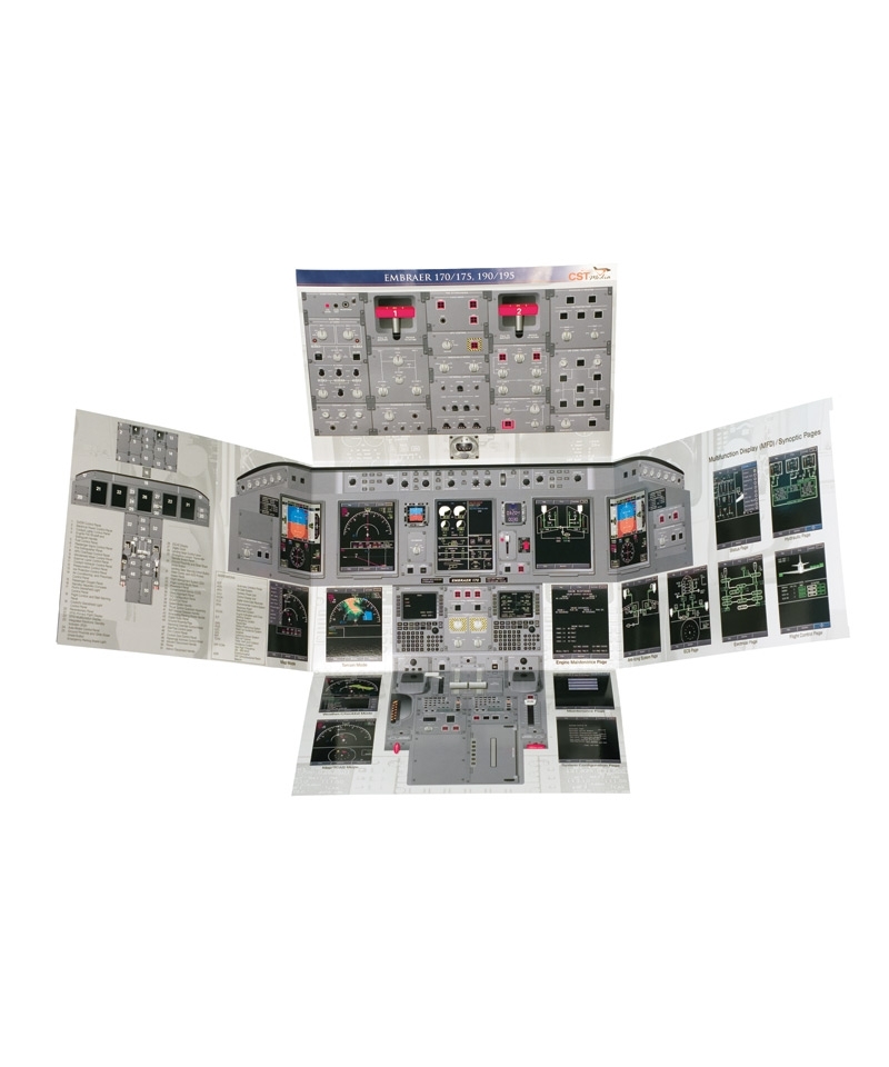 Beschreibung Embraer 170/175, 190/195: Der Erstflug des Basismodells der EMB E-Jet Familie EMB 170 erfolgte im Februar 2002. Mit bis zu 122 Sitzplätzen ist die EMB195 das bisher größte von Embraer gebaute Flugzeug. Die Faltmappe enthält neben der detaillierten Zeichnung der Cockpitinstrumente auch verschiedene Anzeigeoptionen des Honeywell Primus Epic EFIS Systems. Außerdem ist eine farbige und sehr detailreiche Schnittgrafik sowie eine bisher einmalige zusammenfassende Darstellung der Head-up Guidance Symbologie enthalten.