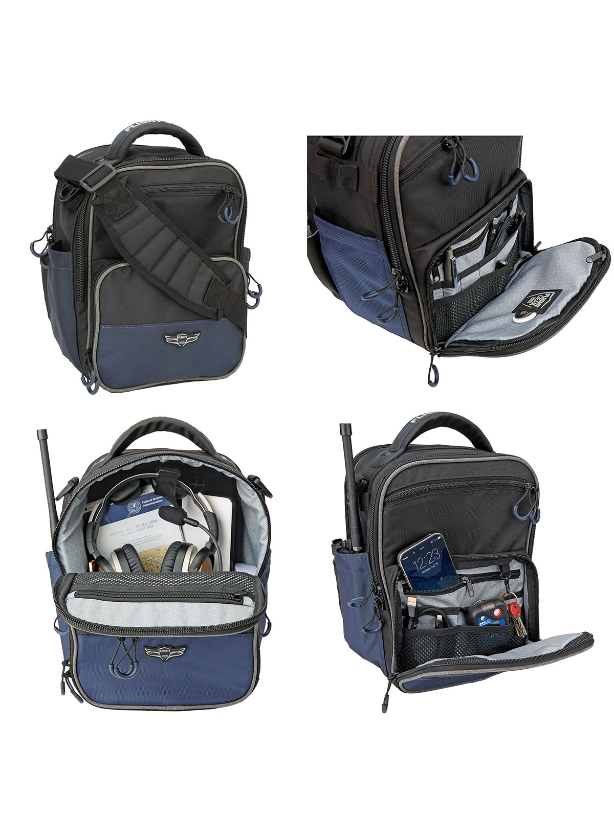 Die Flight Gear iPad Bag wurde für Piloten und Pilotinnen entwickelt, die meisten mit einem oder mehreren Tablets unterwegs sind. Neben den gepolsterten Fächern für die wichtigen Elektronik-Geräte verfügt die Tasche über zahlreiche weitere Steck- bzw. Reißverschlussfächer für eine optimale Organisation. Die trotzdem schmal gehaltene Tasche passt u.U. sogar zwischen die beiden Frontsitze im Kleinflugzeug. Mit ihrem stabilen Tragegriff und den gepolsterten, kaum rutschenden Schultergurt hält die Tasche den Belastungen des täglichen Gebrauchs stand.