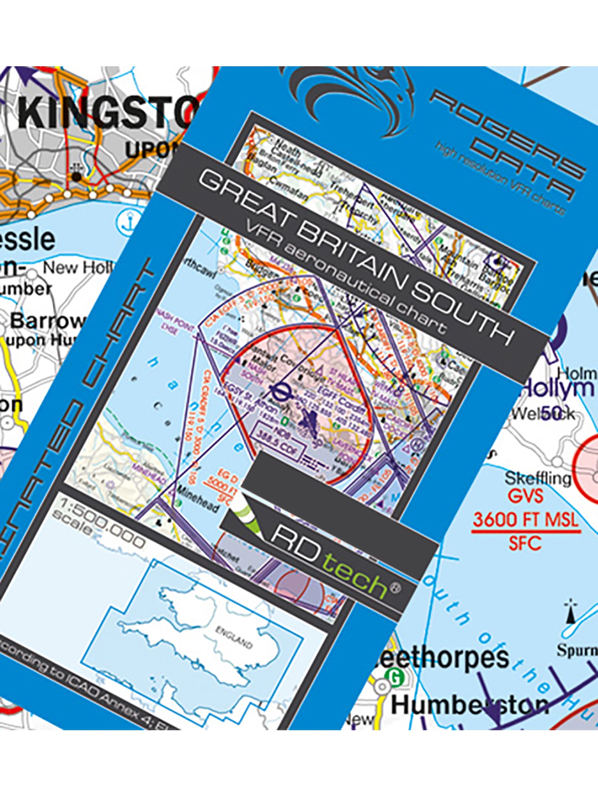 Großbritannien Süd 2026 - Rogers Data VFR Karte, 1:500.000, laminiert, gefaltet