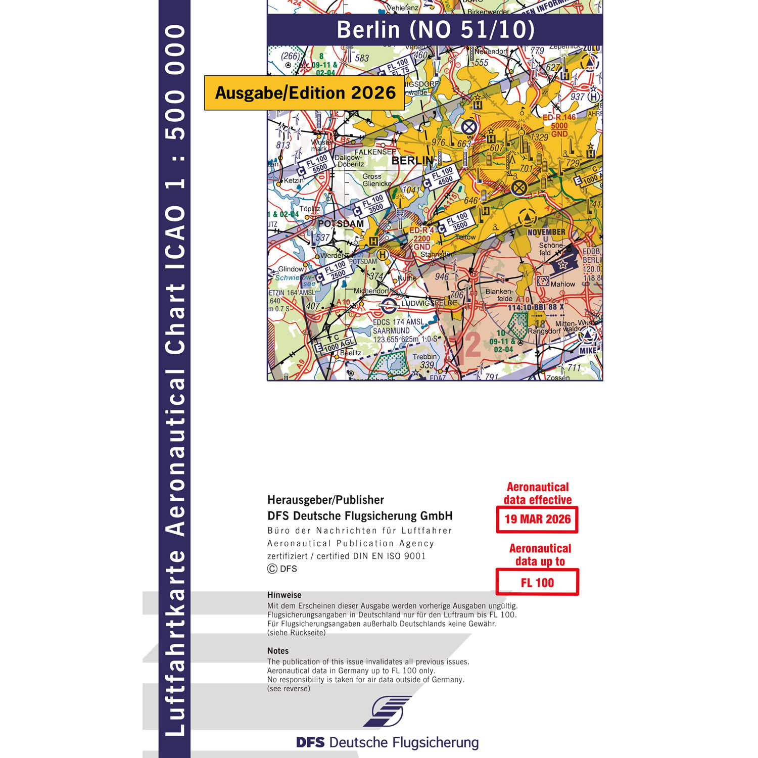 ICAO Motorflugkarte Deutschland, Berlin, 2026, gefaltet, ohne Folie