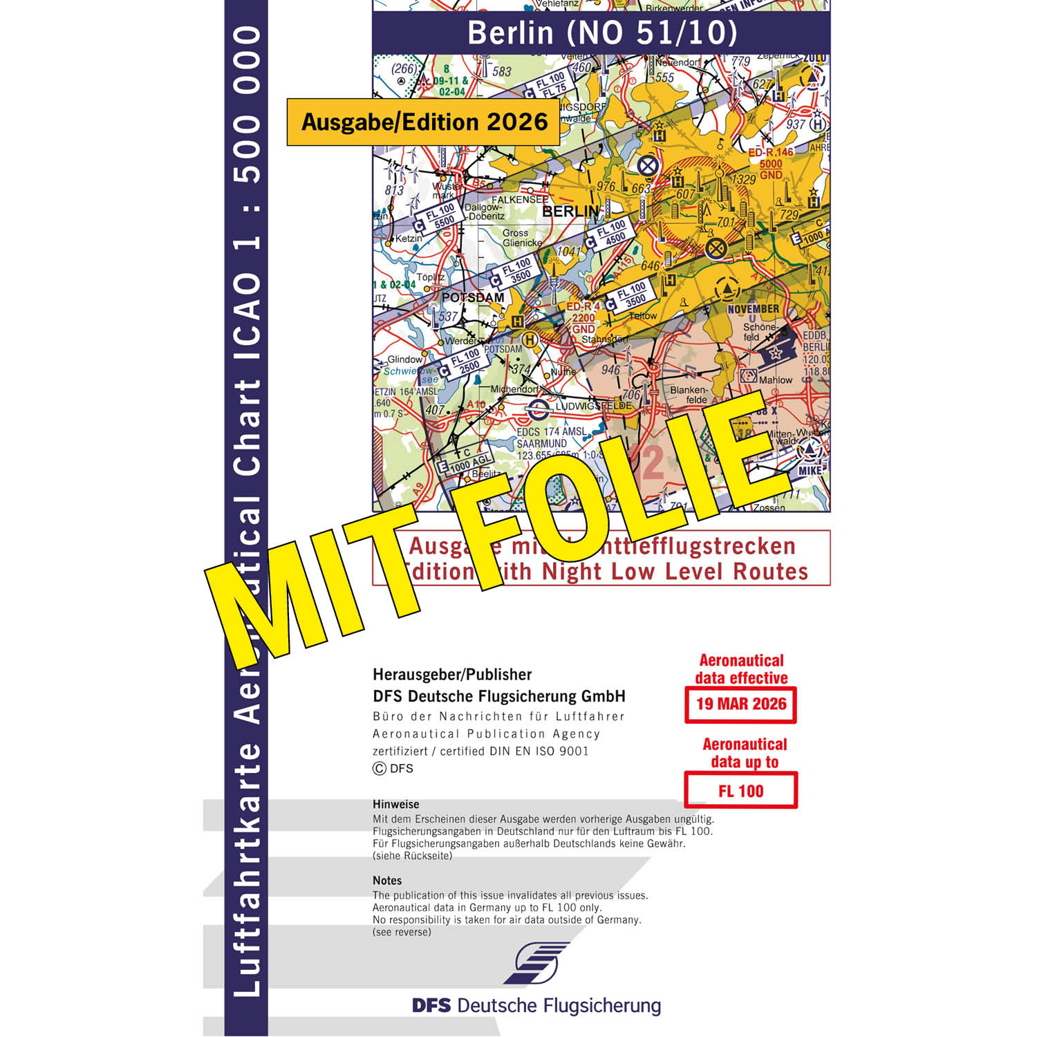 ICAO Motorflugkarte Deutschland, Berlin, 2026, NTFS, gefaltet, mit Folie