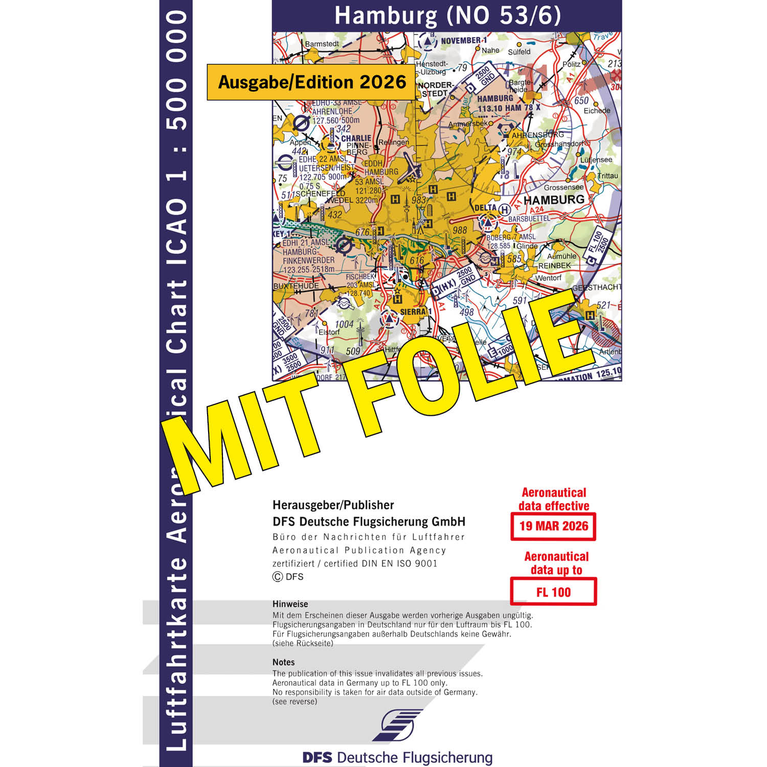 ICAO Motorflugkarte Deutschland, Hamburg, 2026, gefaltet, mit Folie