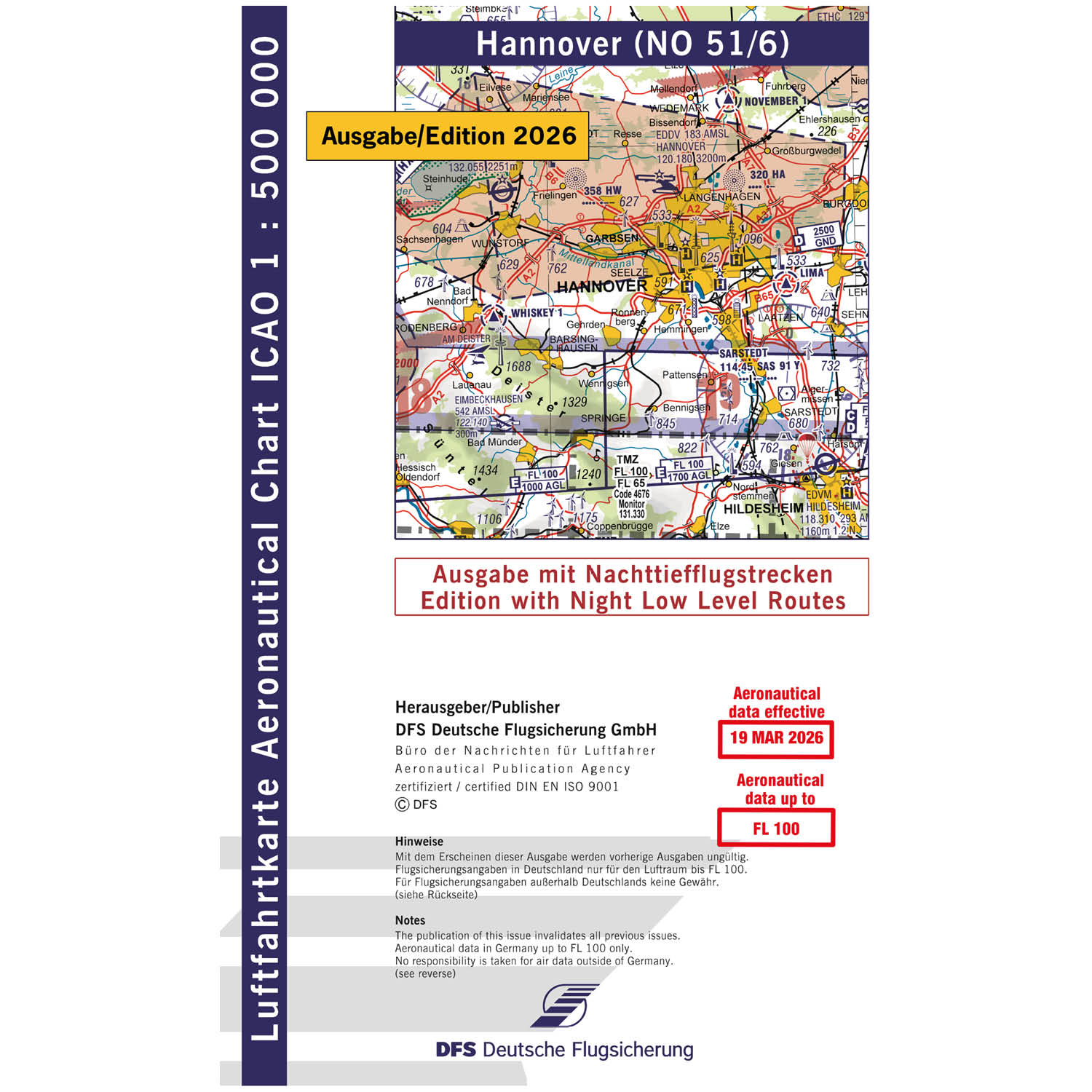 ICAO Motorflugkarte Deutschland, Hannover, 2026, NTFS, gefaltet, ohne Folie