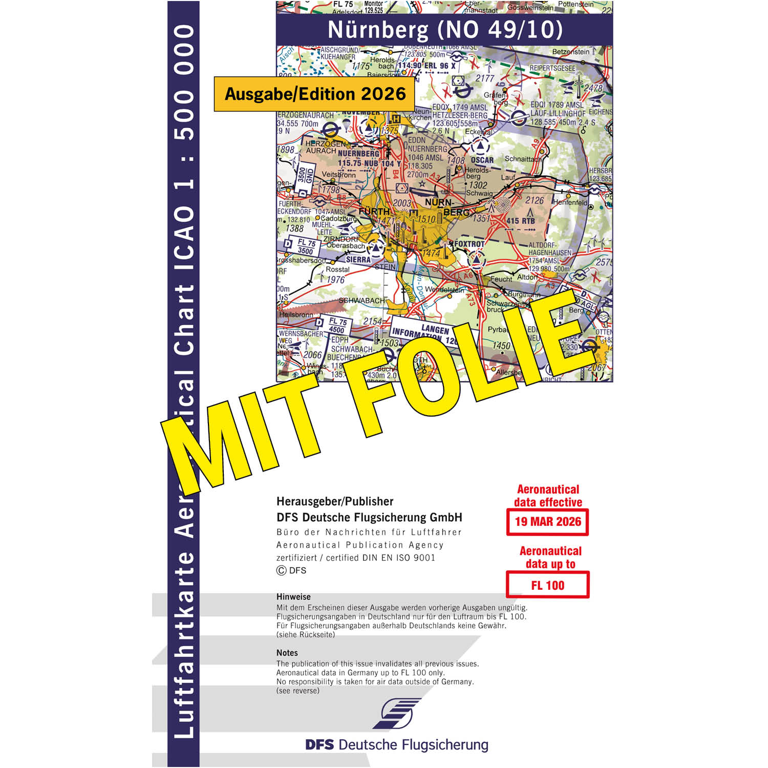 ICAO Motorflugkarte Deutschland, Nürnberg, 2026, gefaltet, mit Folie