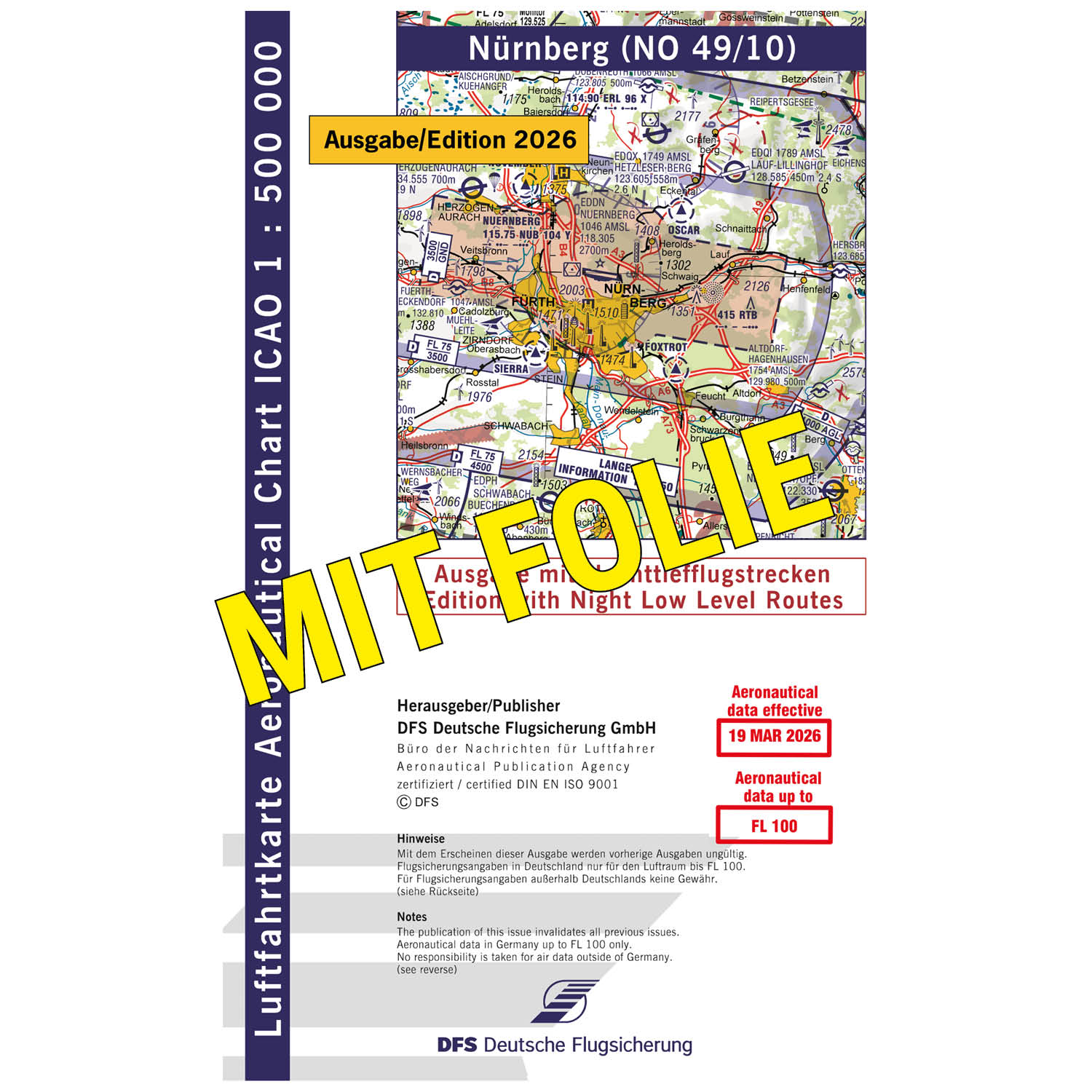 ICAO Motorflugkarte Deutschland, Nürnberg, 2026, NTFS, gefaltet, mit Folie