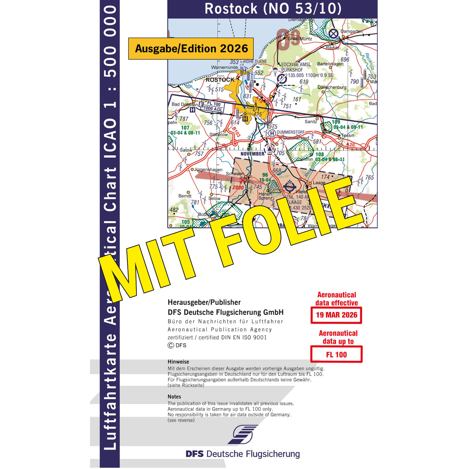 ICAO Motorflugkarte Deutschland, Rostock, 2026, gefaltet, mit Folie