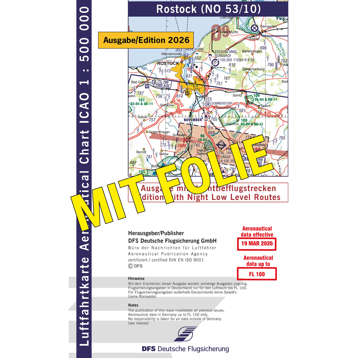 ICAO Motorflugkarte Deutschland, Rostock, 2026, NTFS, gefaltet, mit Folie