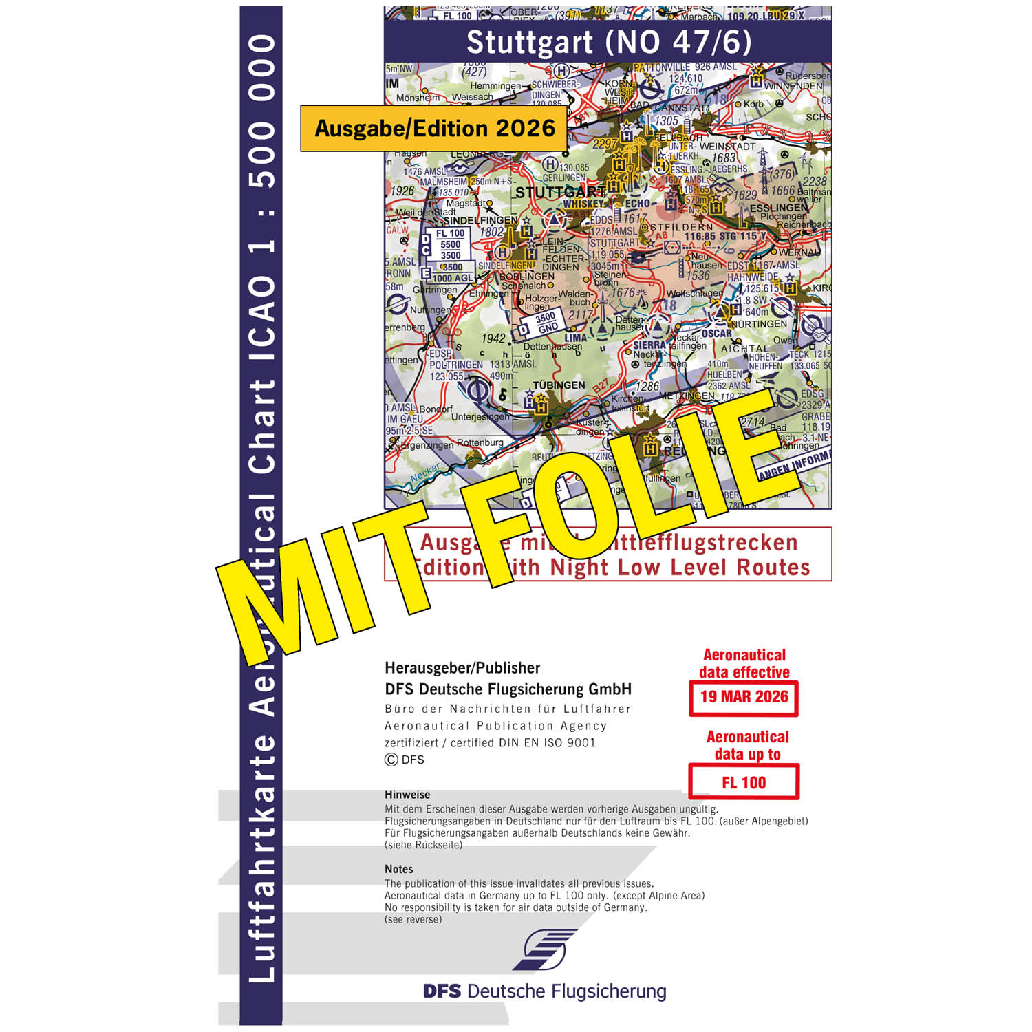 ICAO Motorflugkarte Deutschland, Stuttgart, 2026, NTFS, gefaltet, mit Folie
