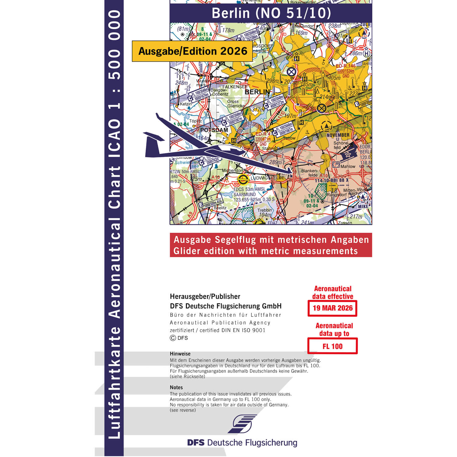 ICAO Segelflugkarte Deutschland, Berlin, 2026, gefaltet, ohne Folie