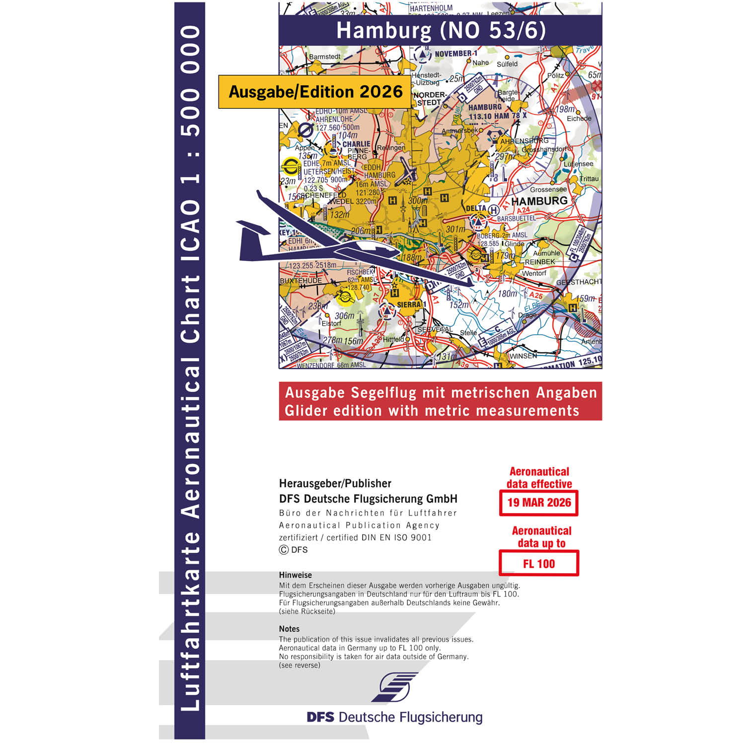 ICAO Segelflugkarte Deutschland, Hamburg, 2026, gefaltet, ohne Folie