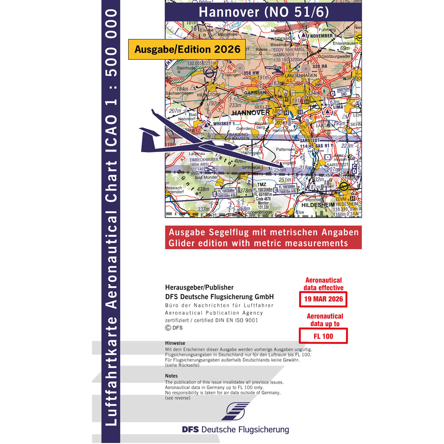 ICAO Segelflugkarte Deutschland, Hannover, 2026, gefaltet, ohne Folie