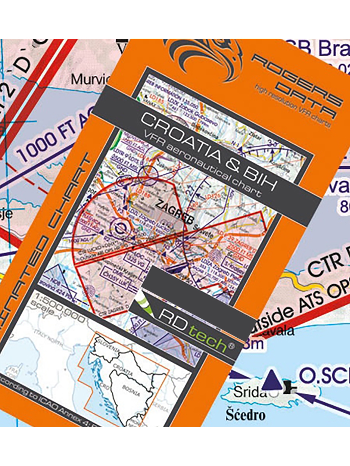 Kroatien & Bosnien-Herzegowina 2026 - Rogers Data VFR Karte, 1:500.000, laminiert, gefaltet