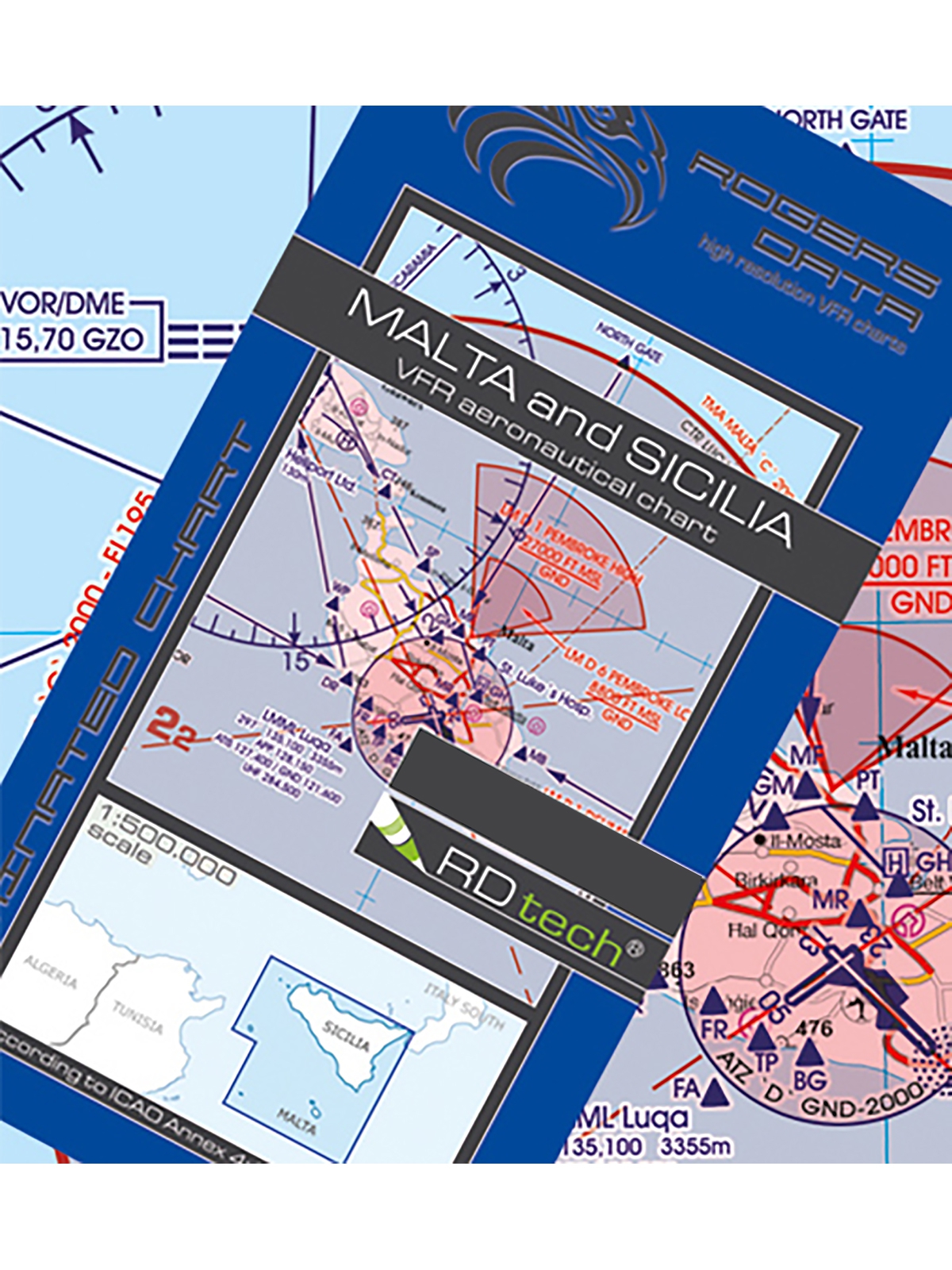 Malta / Sizilien 2026 - Rogers Data VFR Karte, 1:500.000, laminiert, gefaltet