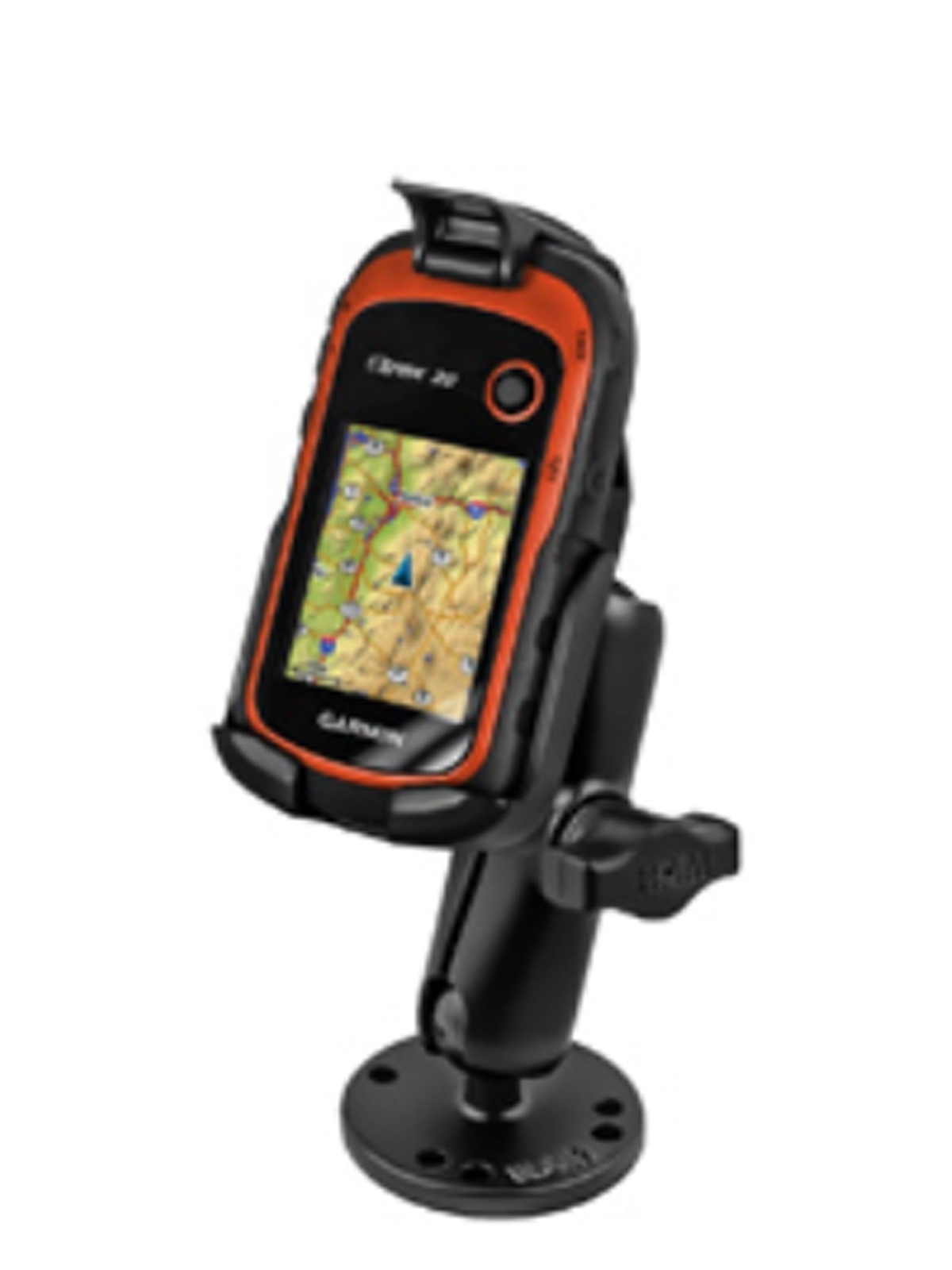 RAM Mounts Aufbau-Kompletthalterung für Garmin eTrex 10/20/30 Serie - mit runder Basisplatte (AMPS), B-Kugel (1 Zoll)