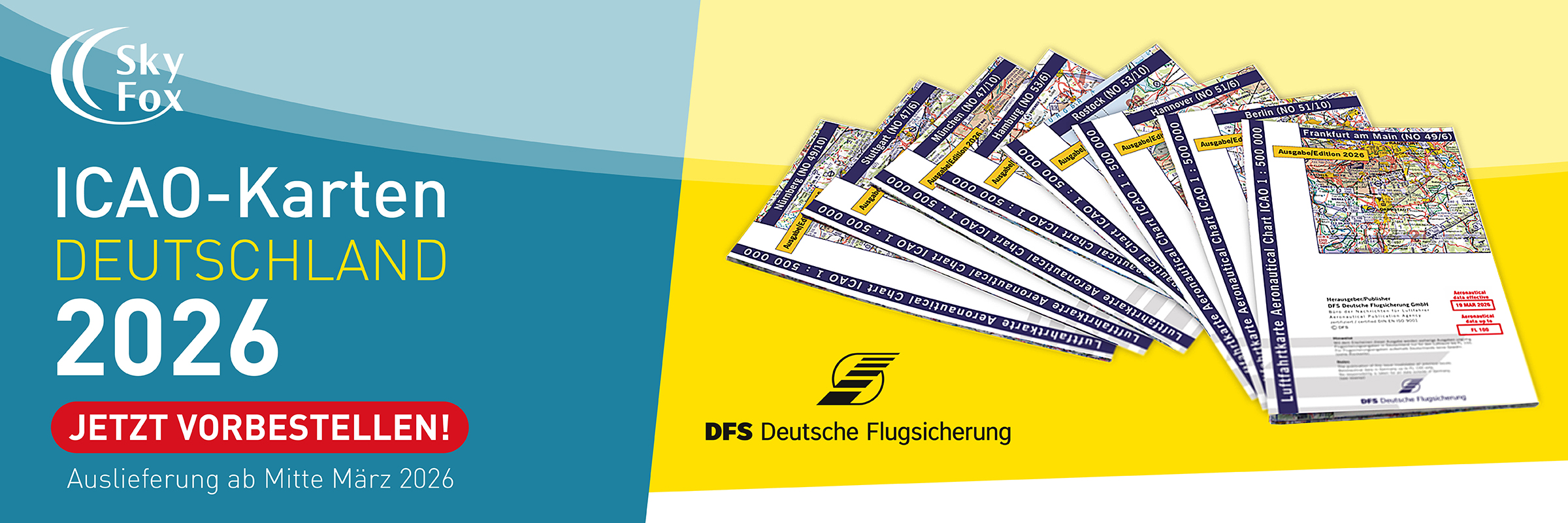 Satz ICAO Motorflugkarten Deutschland 2026 - NTFS, gefaltet, ohne Folie